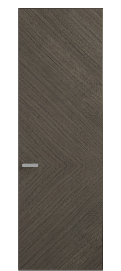 Полотно Рифт в скрытом алюминиевом коробе становится полноценным элементом декора. В коллекции представлено 9 моделей дверей в высоте до 3 метров. Рисунок раскладки шпона варьируется от простого до сложного. «Рубашка» для каждого полотна подбирается вручную по цвету, текстуре и фактуре.